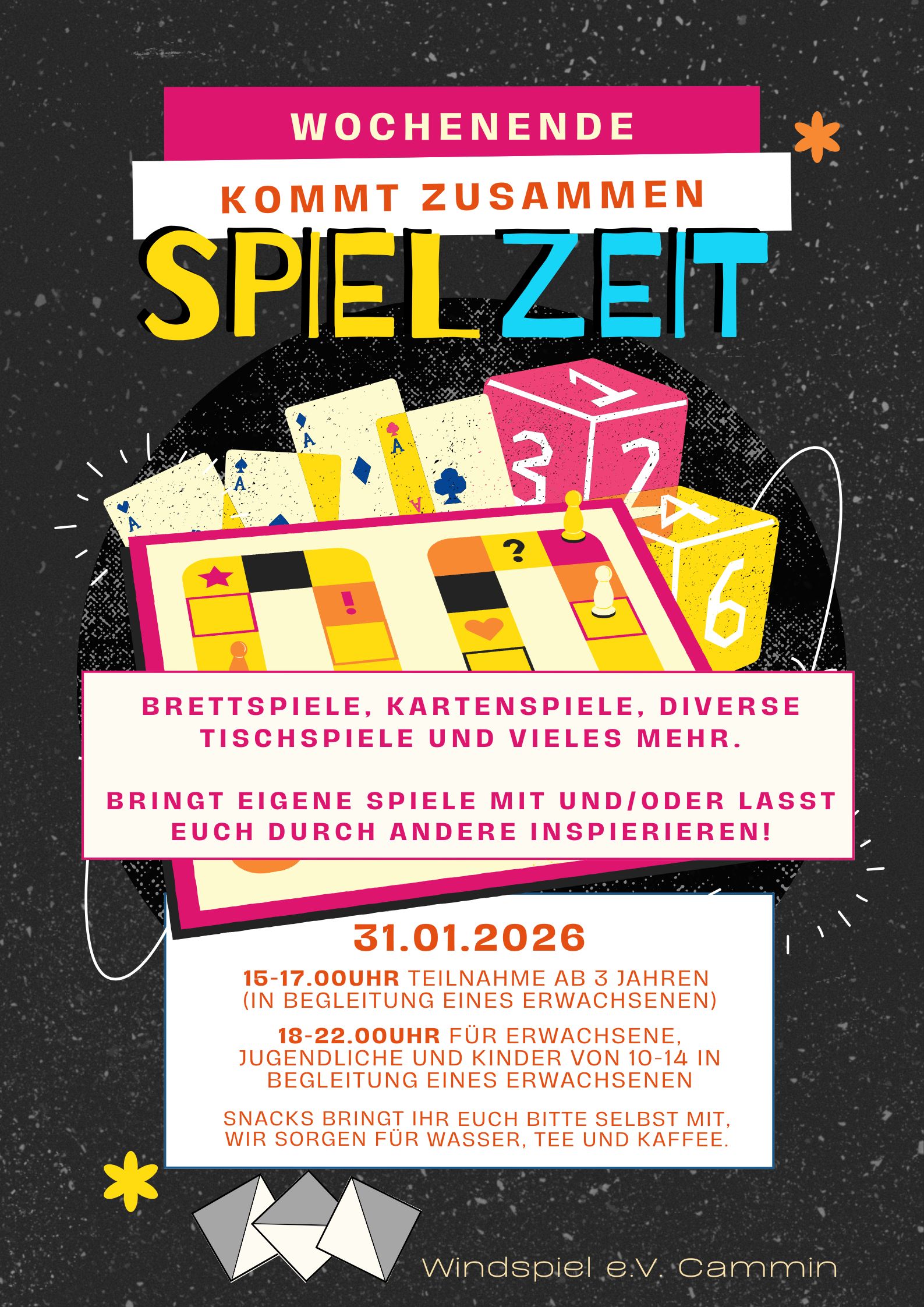 Gespielt wird im Vereinsraum und dem großen Raum im DGH Cammin. Der Eintritt ist frei.